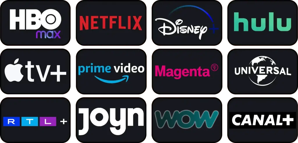 Amazon Prime, JOYN, Viaplay, MAGENTA, RTL+, Discovery+ , HBO Max, Netflix, Apple+, Disney+